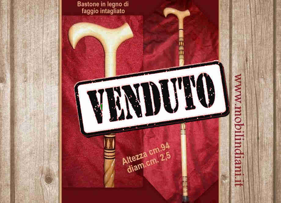 Disponibilità 0Elegante bastone da passeggio in legno di faggio intagliato, impugnatura a stampella per uomo e per donna, puntale in gomma antisdrucciolo. Alt.cm. 94 diam.2,5 Paese India