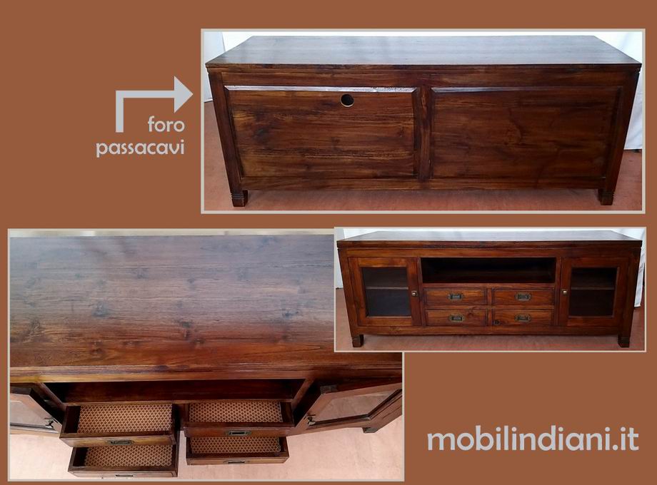 Porta tv indonesiano, legno teak massello 2 antine a vetro, 4 cassetti e vano a giorno. Sul retro è presente un foro passacavi (vedi foto) Cm.154x50 h.61. Paese Indonesia PER INFO COSTI SPEDIZIONE CHIEDI su WhatsApp o via mail: info@mobilindiani.it