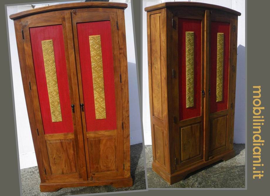 Armadio indiano con ante rosse + intaglio. Cm.100x40 h.190