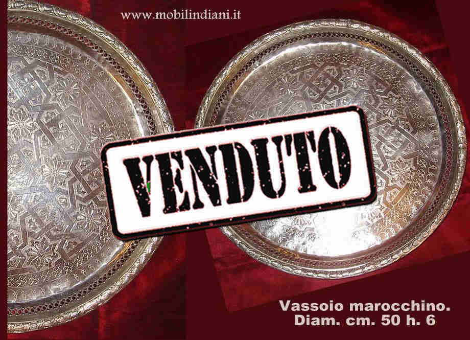 Vassoio gigante marocchino cesellato. Interamente tornito a mano da artigiani di Marrakech. Diam. cm.50 h.6 In Marocco il vassoio riveste un'importanza culturale e sociale; non solo è un oggetto utile per servire il tradizionale thè, ma simboleggia l'l'ospitalità, la generosità della cultura marocchina.