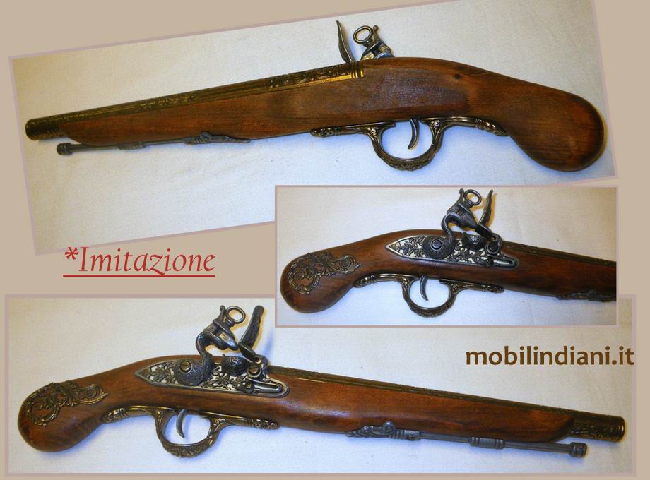 Disponibilità 1Riproduzione pistola a percussione canna lunga, realizzata in legno e metallo (vedi foto) Dimensioni: lungh. cm.43 - diam. canna 2 - Peso kg. 0,620 *REPLICA - COSTO TRASPORTO €. 12,81 Iva Inclusa. Per costi trasporto Isole, chiedi info su WhatsApp o mail: info@mobilindiani.it