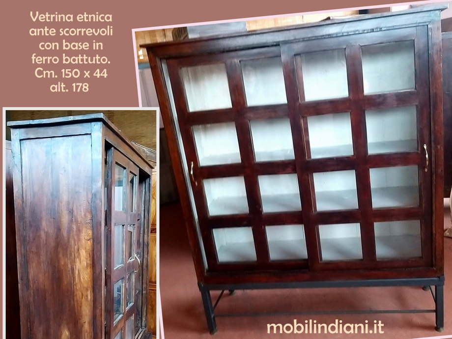 Vetrina etnica 2 ante scorrevoli. Cm. 150x44 h.178 India